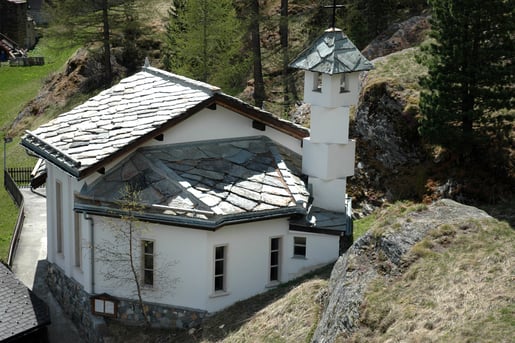 wurde, stand früher eine bescheidene Kapelle. Diese wurde jedoch zu klein, so dass die Bewohner des Weilers mit der Bitte an Pfarrer Christoph Perrig traten, am selben Ort ein neuese Gotteshaus